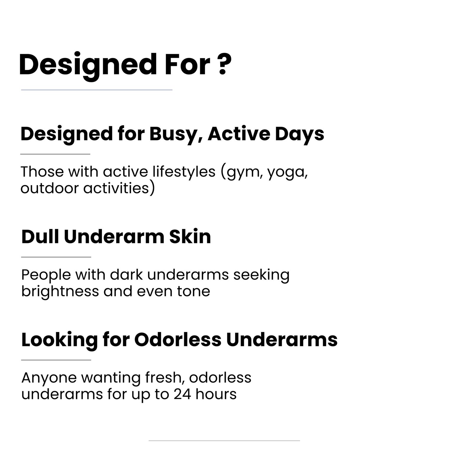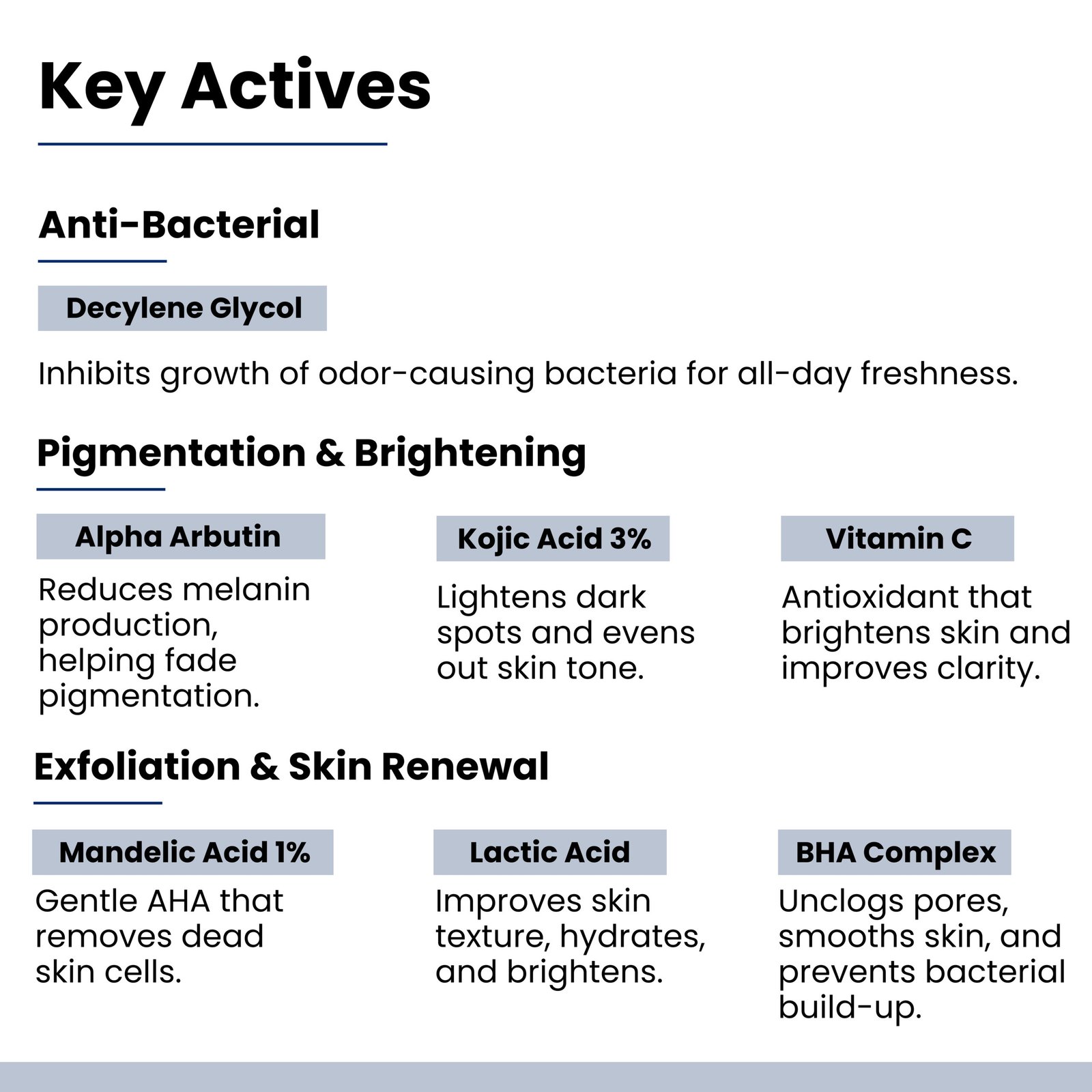 - ENHANCES SMOOTHER & BRIGHTER UNDERARMS: Formulated with 5% AHABHA , 3% Kojic Acid 2% Lactic Acid and 1% Salicylic Acid, this product gently exfoliates dead skin cells, promoting faster cell turnover and renewal for fresher, smoother skin. Additionally, 1% Mandelic Acid boosts collagen production, leading to radiant underarms. Meanwhile, Alpha Arbutin works to decrease melanin production, diminish dark spots, and even out underarm discoloration.