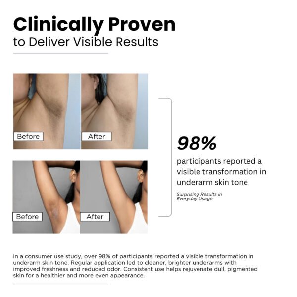 - CONVENIENT TO USE: Our roll-on design offers a hassle-free and straightforward application, making it an ideal choice for daily use. It glides on smoothly and swiftly, leaving no sticky or greasy residue, ensuring you feel fresh and dry throughout the day. With consistent use, you’ll observe a more even and radiant underarm area.