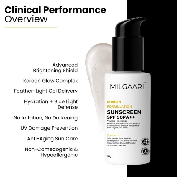 • SPF 50PA++ GEL Protection: Milgaari sunscreen provides broad spectrum UVA/UVB protection with SPF 50+ to shield your skin from harmful sun rays.